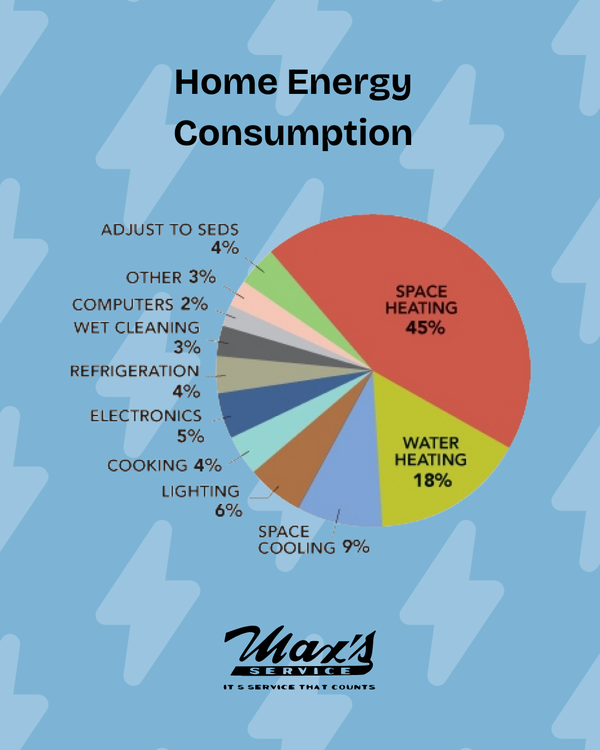 According to the Department of Energy, space heating, water heating, and space cooling comprise the largest shares of energy consumption in US homes: